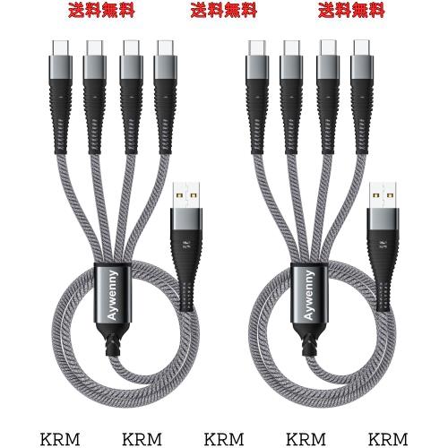【2本セット】 4 in 1高耐久編組ナイロン多機能充電ケーブル、USB急速充電ケーブル、4種類のインターフェースTypeC*4 を持ち、4台の設備