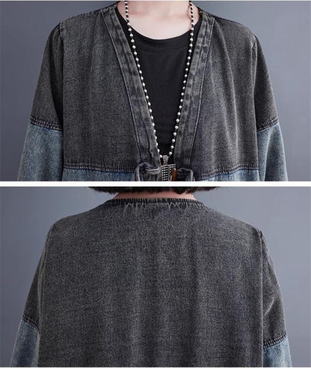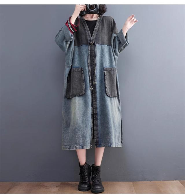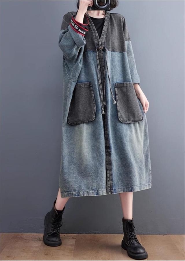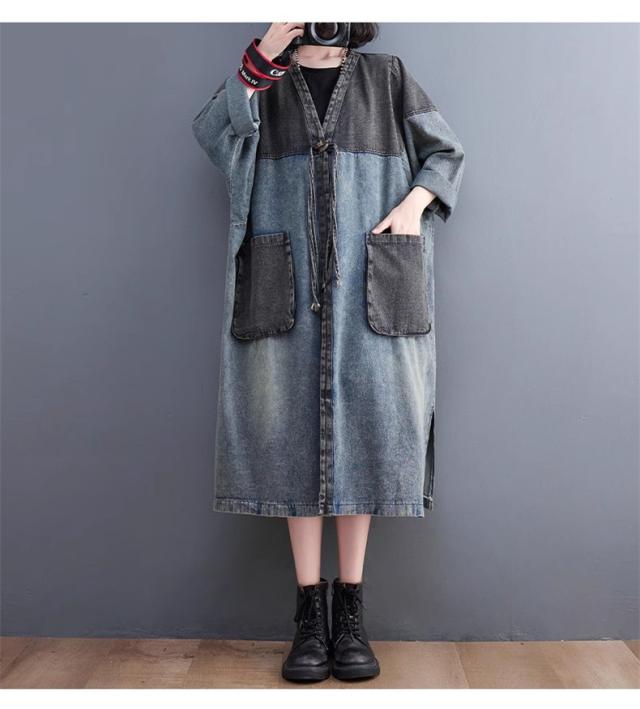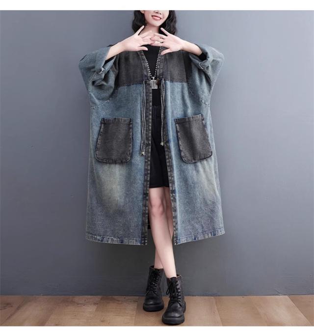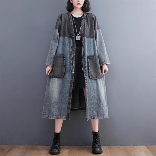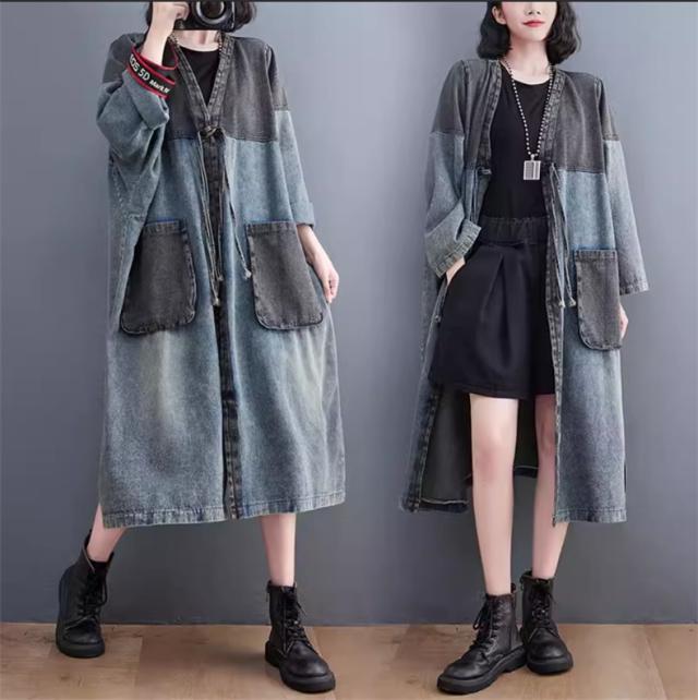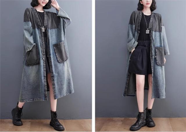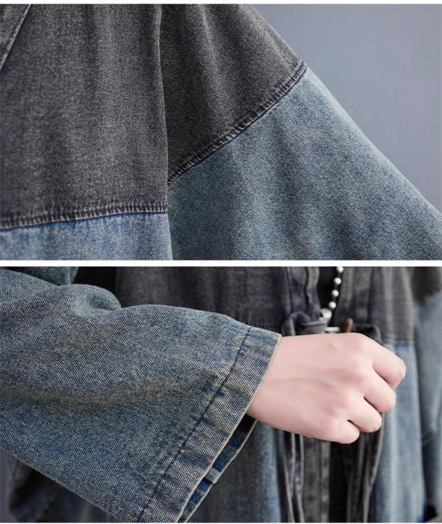 アウター 春トップス レディース ロングジャケット デニム 切り替え 大きいサイズ おすすめ カジュアル 今っぽい着こなしに トレンド感たっぷりなデザイン