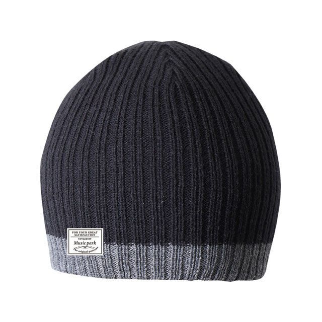 おたふく手袋 ラインニット帽(ブラック×グレー) OTAFUKU GLOVE