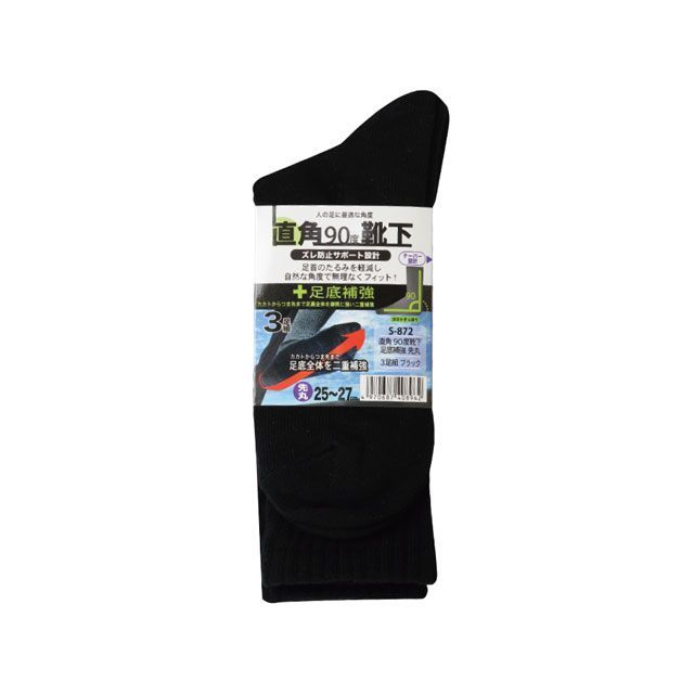 ●商品名:S-872 直覚靴下 補強先丸3P ブラック