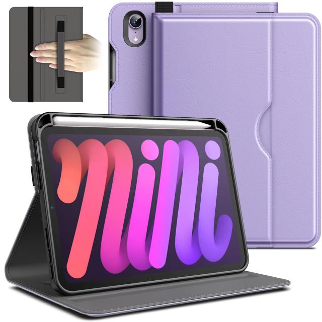 JEDirect iPad Mini 6 ケース (8.3インチ、2021モデル、第6世代用) PUレザー ビジネスフォリオ タブレット保護カバー Pencilホルダーとポ