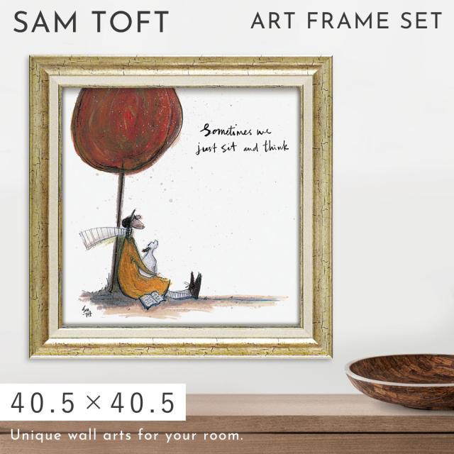 サムトフト 絵画 絵 40.5×40.5cm 【時にはゆっくり考えよう】 アートパネル アートフレーム 壁掛け おしゃれ 犬 アートボード ポスター インテリア 絵 モダン アンティーク 玄関 飾る イギリス作家 ST-08119 ギフト プレゼント 新築祝