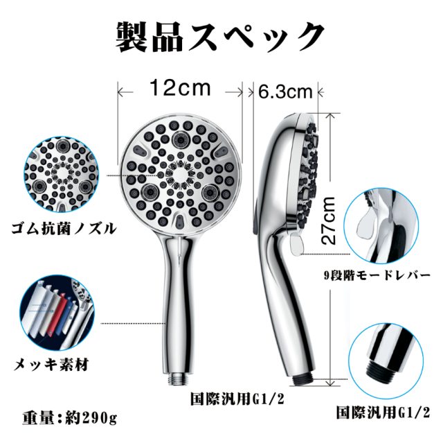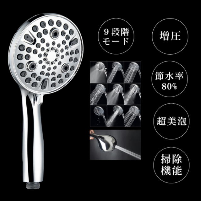 シャワーヘッド マイクロナノバブル 節水 増圧 美容 ミスト マイクロナノバブル 節水 シャワー スパレベル 多機能 9段階モード 掃除機能 肌ケア 風呂 高洗浄力 毛穴 汚れ 除去 美髪 美肌 美顔 美容 取付簡単 アダプター付 ホワイト シルバー 国際汎用基準G1/2
