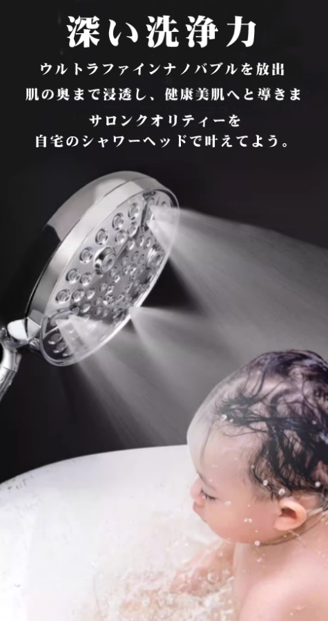 【美肌&保湿】毛穴の黒ずみや皮脂汚れを取り除きワントーン明るい肌へ導きます。水流は細密だが幅広くて、まるでシルクのような感じが得られて、使用後肌の水分量が20%以上アップ!また、マイクロバブルという超微細の気泡を作れるもので、肌や髪がなめらかだけだはなく、洗浄力がよく、髪の水分を高くキープできるといったも魅力点です。浴びるたび、肌や髪の美しさに磨きがかかります。
