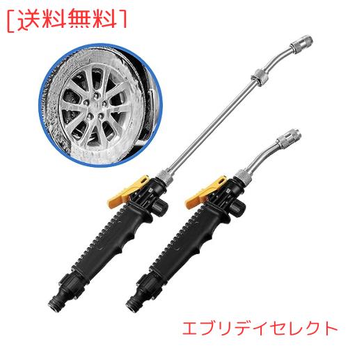 【サイズ】2個セット、30cmと48cmのサイズがあります。 【高品質】金属製およびプラスチック製のハンドル。2本セット,手が届きにくい高所にも対応する48cm長と、狭い場所にも対応する30cmの便利な2本セットですので洗車ガンとして使用したりガーデニングの水やりなど用途に合わせて使い分けいただけます。 【水圧の調節が可能】噴霧水流と霧化噴霧の2モード。ジェットストリームモードで素早く効率的に洗浄でき、ミストジェットモードで庭木を傷めずに水やりができます。この洗車ガンは用途に合わせて噴射拡散幅を可変することができます。広角のミスト噴射から狭角のジェット噴射までノズル先端のノブを回転させることで調整可能です。 【用途】によって全長48cmロングノズル、全長30cmショートノズルの2本を使い分けできます。車、バイク、自転車、エアコン、外壁、床などの高圧洗浄、お庭や玄関、屋根への散水、家庭菜園やガーデニングの水やりなど用途は多様です。 【人間工学に基づいたデザイン】ハンドルは人間工学に基づいたデザインで、快適なグリップを実現します。時間と手間を省く。