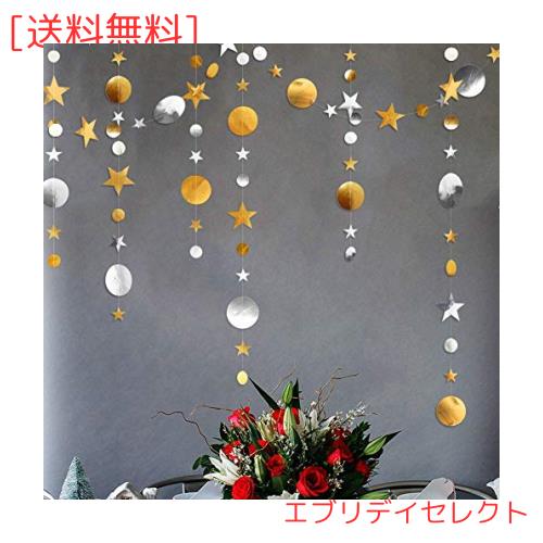 3本 ペーパーガーランド 丸形 星形 飾り 写真小物 金・銀色 キラキラ パーティー イベント 店舗 装飾
