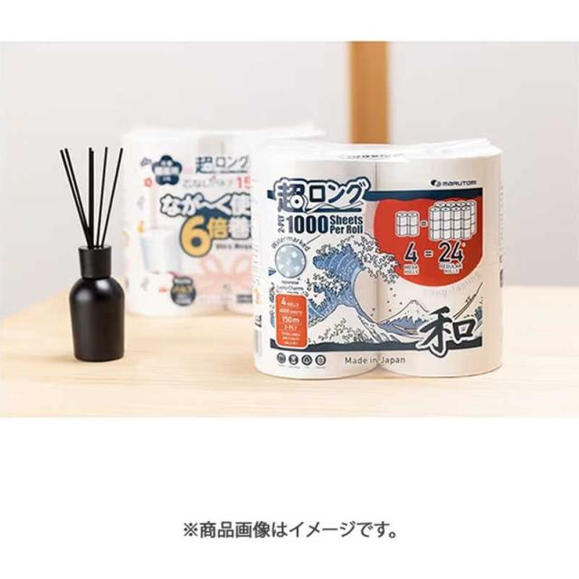 『超ロング6倍巻き』なら、たったの4ロールで一般的なトイレットペーパー(※)の長さ24ロール分に相当します。