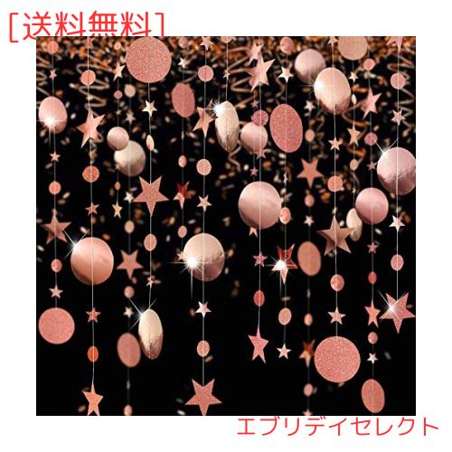 3本 ペーパーガーランド 丸形 星形 飾り 写真小物 キラキラ輝く パーティー イベント 店舗 装飾 ローズゴールド