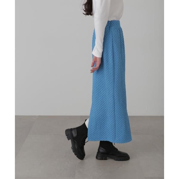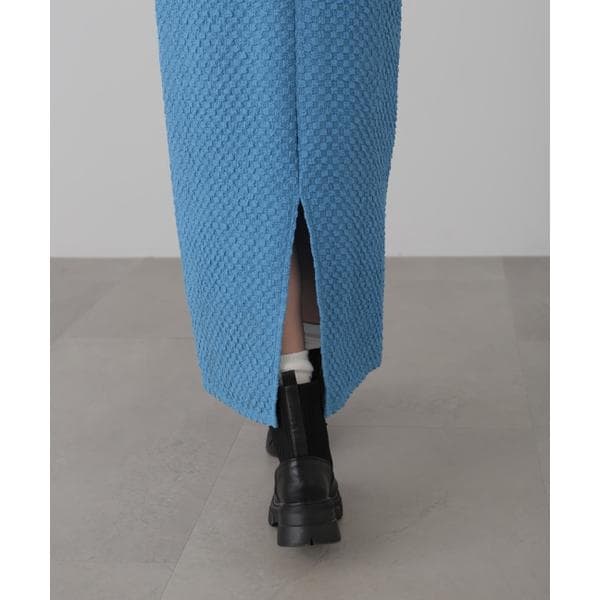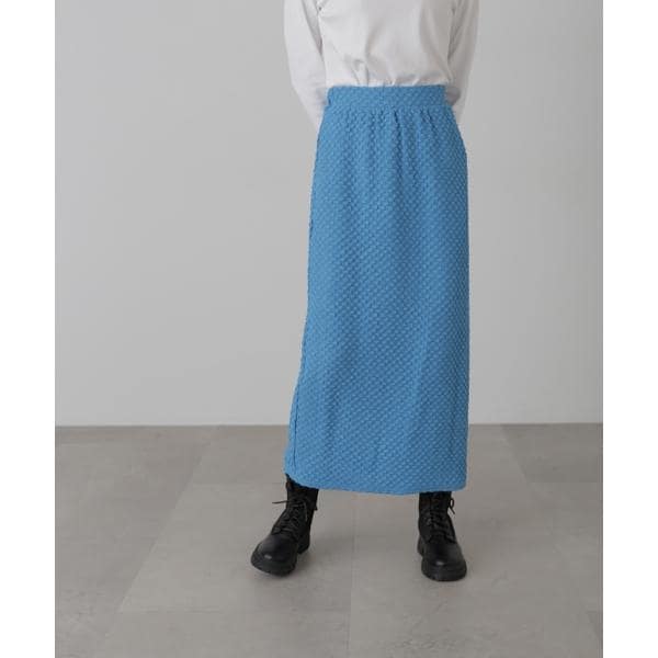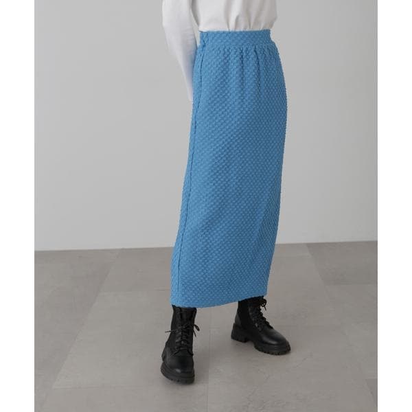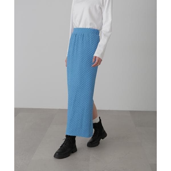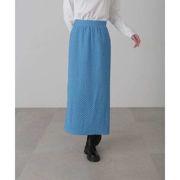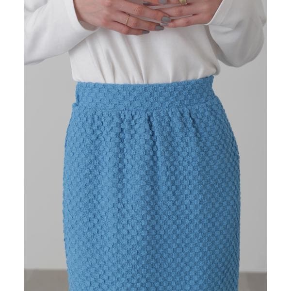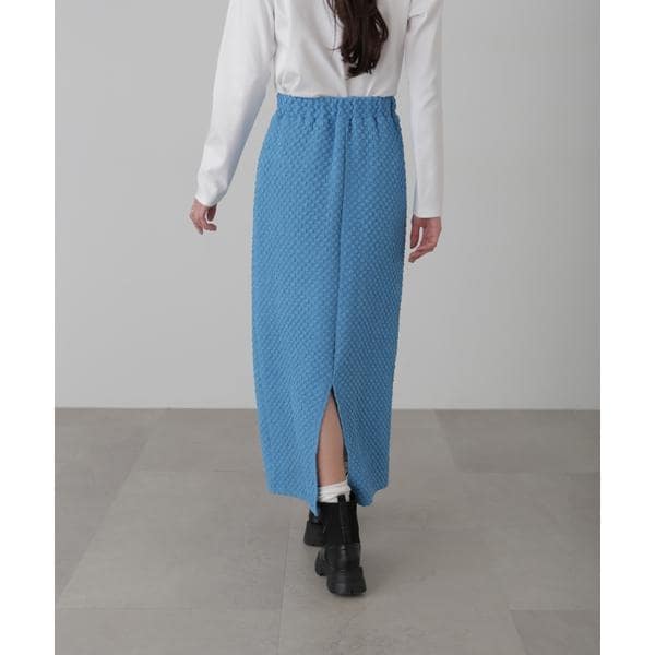 ポコポコとした表面感で、存在感のある可愛らしいナロースカート。伸縮性があり、着心地の良さも◎。体のラインを拾い過ぎないナローシルエットで着回ししやすく、オールシーズンお使いいただけます。センターバックにスリット入りで足さばきも良く、裏地付きです。ニットやスウェット、シャツなどもバランスよく合わせやすいです。※モデルの着用画像の場合、光の当たり具合により、実際の色味と異なって見えることがございます。色味は、商品単体の画像をご参照ください。