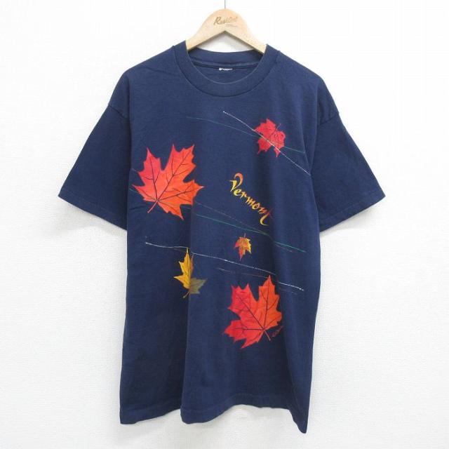 【商品名】 XL★古着 半袖 ビンテージ Tシャツ メンズ 90年代 90s デルタシャトル 飛行機 大きいサイズ クルーネック 紺