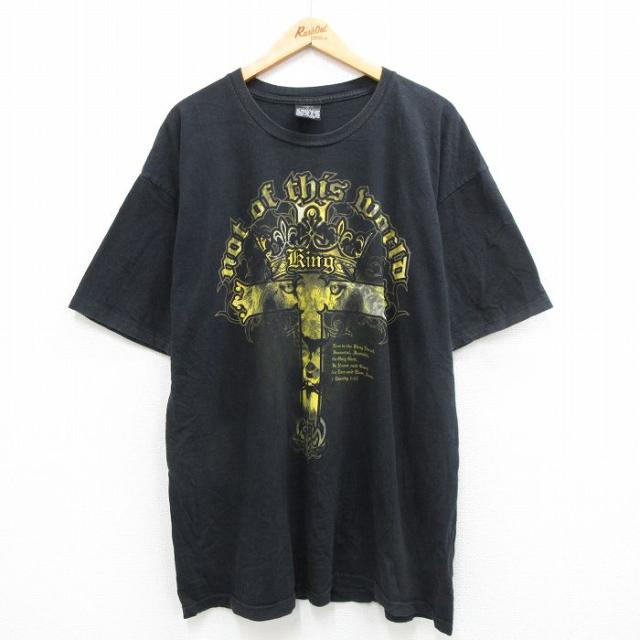 【商品名】 XL★古着 半袖 ビンテージ Tシャツ メンズ 00年代 00s Not of this world ライオン 大きいサイズ ロング丈 コットン クルーネック 黒