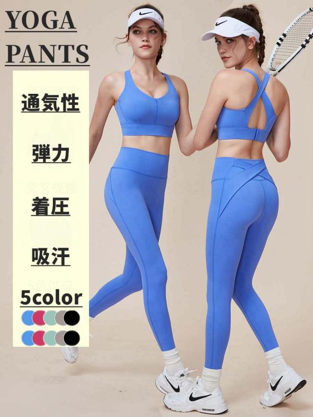 2024新作 ヨガパンツ 2点セット ブラ ヨガタイツ スポーツ フィットネス ジム 屋外 ランニング 美脚 SPF50+