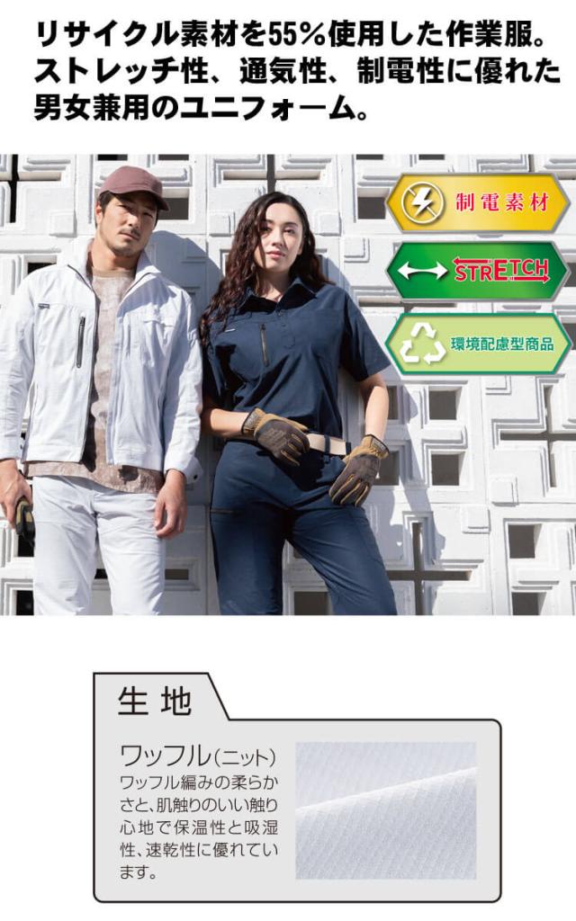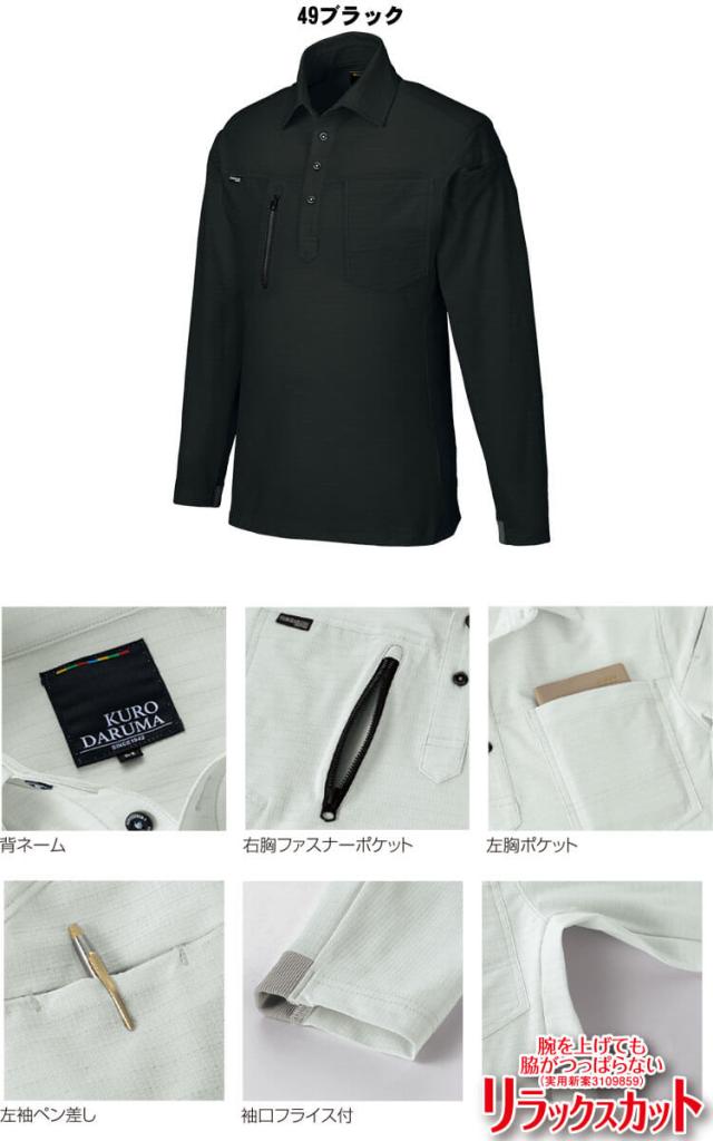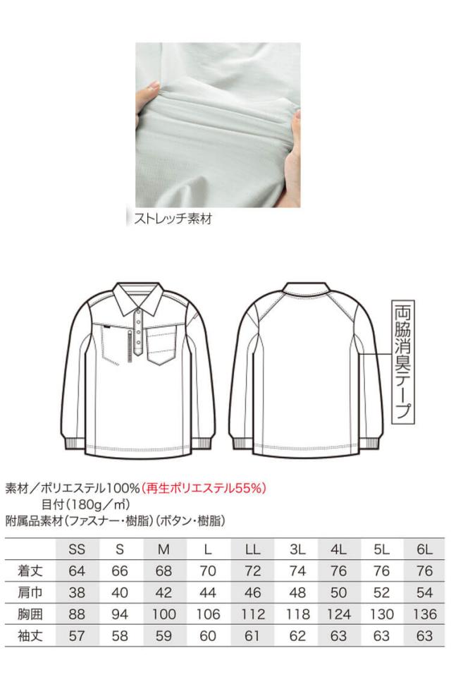 クロダルマ KURODARUMA 長袖ポロシャツ 25686 春夏 ユニセックス エコ ストレッチ 制電素材 サイズSS〜5L