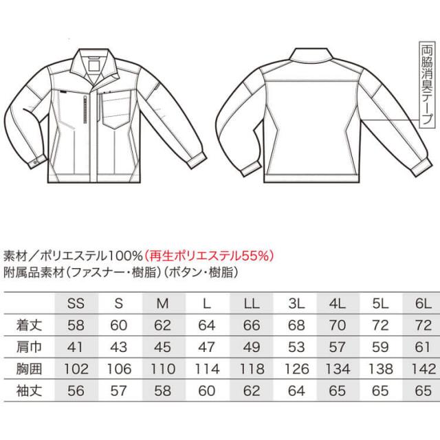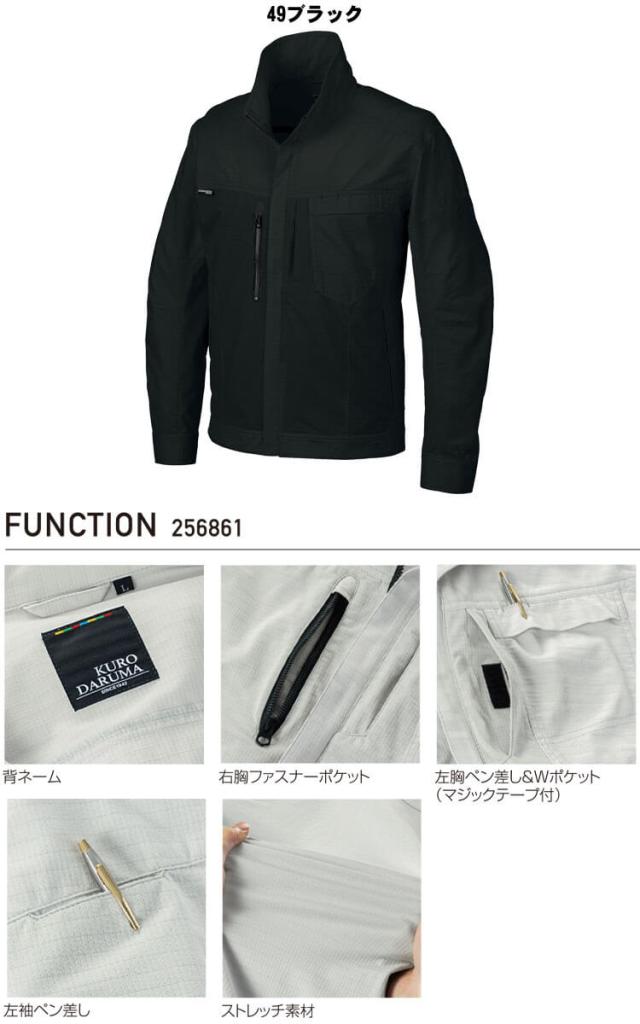 クロダルマ KURODARUMA 長袖ジャンパー 256861 春夏 ユニセックス エコ ストレッチ 制電素材 サイズSS〜5L
