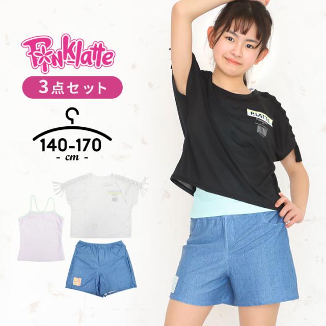 ピンクラテ 水着 女の子 セパレート 3点セット タンキニ 140cm 150cm 160cm 170cm キュロット tシャツ 半袖 PINK LATTE ジュニア 水着 女の子 キッズ 夏 プール 夏 おしゃれ かわいい 小学校 小学生 中学校 ブランド
