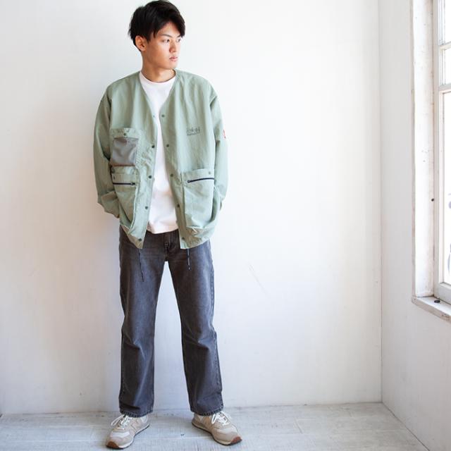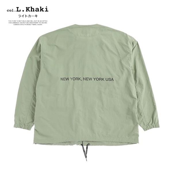 軽やかでタフなワッシャーナイロンを採用したノーカラーのコーチジャケット。 形はベーシックながら、衿部分はVネックでトレンド感を演出。 |