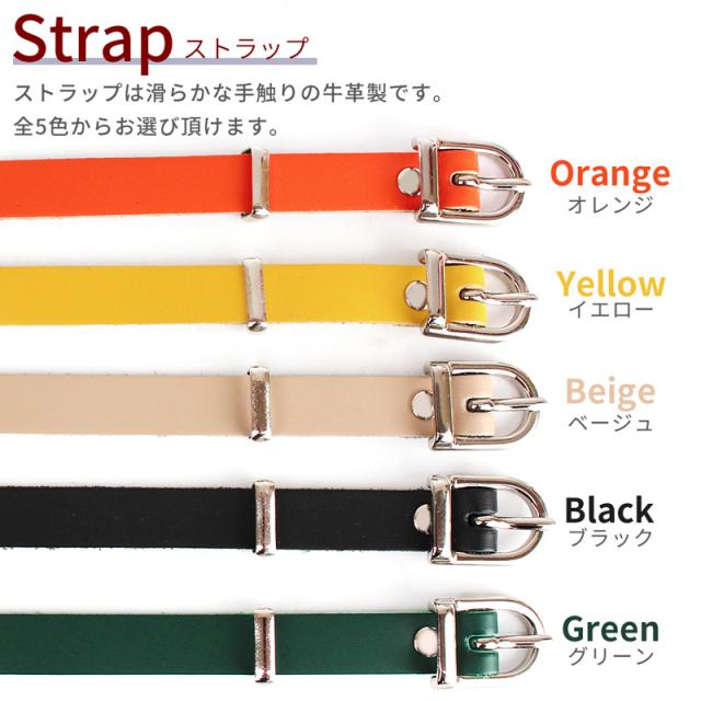 | サイズ | アクリルネームタグ:約 横35mm×縦95mm×厚み(ネジ部分)9.5mm レザーストラップ:約 全長210mm(金具含む)×レザー幅12mm |