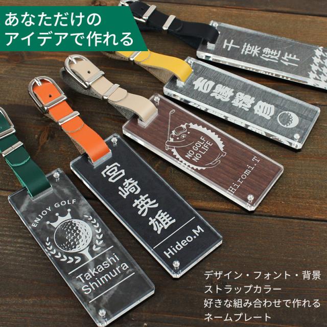 デザイン ベースが選べる ゴルフ ネームプレート 刻印 アクリル×テクスチャーシート ネームタグ 名入れ ネームホルダー