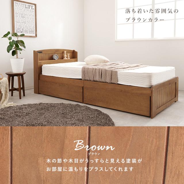 マットレス付き ベッド シングル すのこベッド ベッドフレーム 宮付き 収納付き おしゃれ 木製 ボンネルコイルマットレスセット ポルク すのこベット シングル コンセント付き 宮付き 引出し