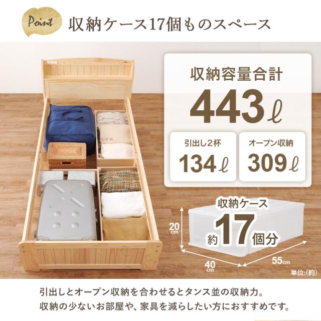 ★引出しは大容量で収納ケース何個分もの収納が可能でまるでチェストベッド。