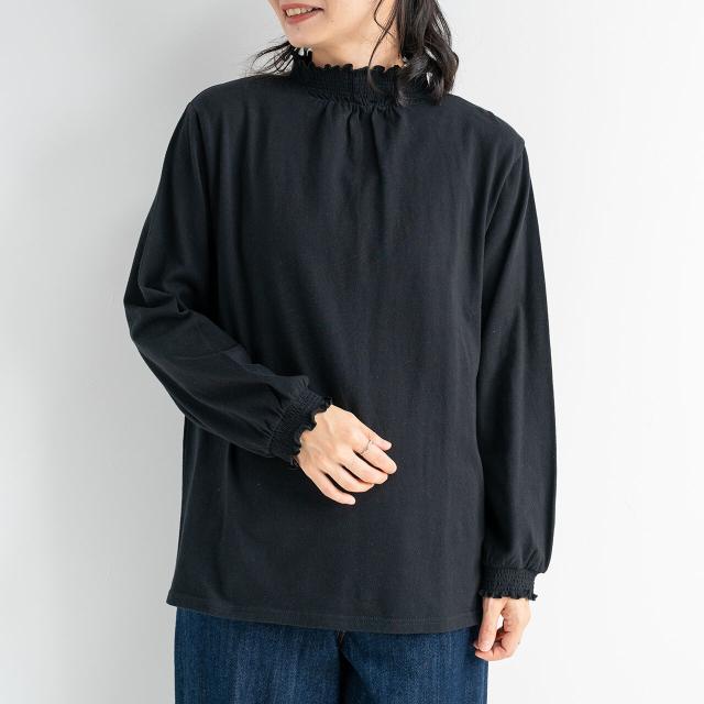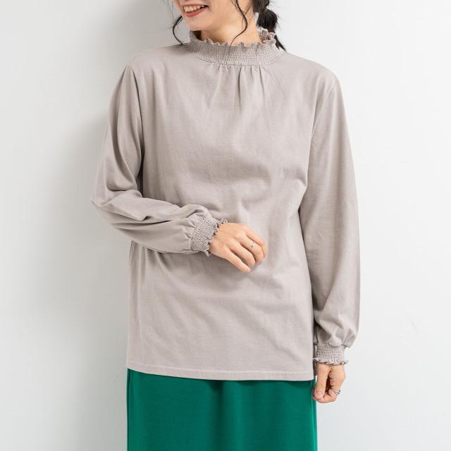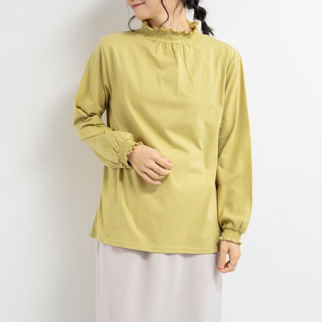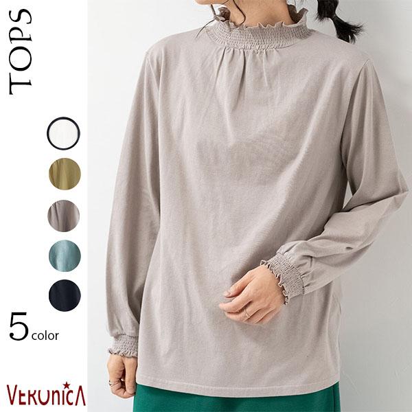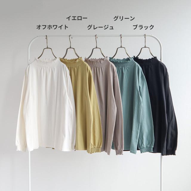 【即納】シャーリングギャザートップス 綿100% 無地 長袖 カジュアル ナチュラル 春夏 秋冬 AW 新作