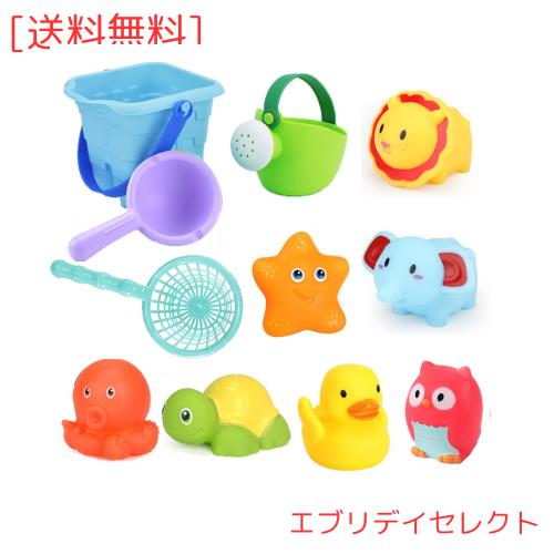 Bacolos 水遊び おもちゃ プール おもちゃ シャワー 子ども ジョウロ お風呂 動物 おもちゃ 11点セット 噴水 音出す動物 漁網 ひしゃく