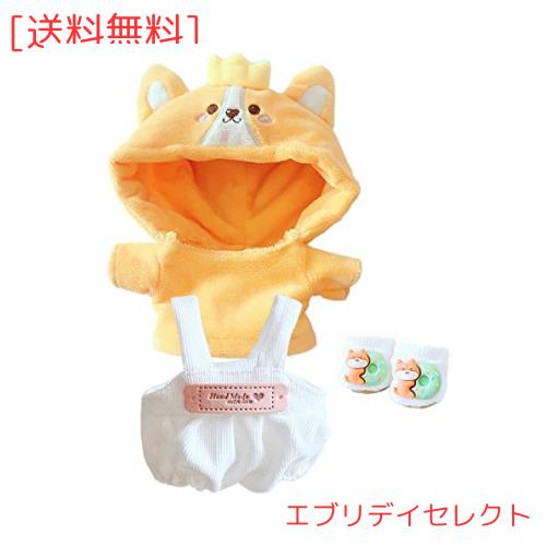 niannyyhouse 綿人形の服 20cm人形の服 上着+吊りズボン+靴 3点セット 着せ替え 子犬の服 パーカー コーデュロイオーバーオール 動物の靴
