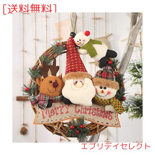 クリスマスリース クリスマス花輪 玄関 庭園 ドア ぶら下げ飾り Merry Christmas 雪だるま サンタクロース サンタクロース 立体感 玄関飾