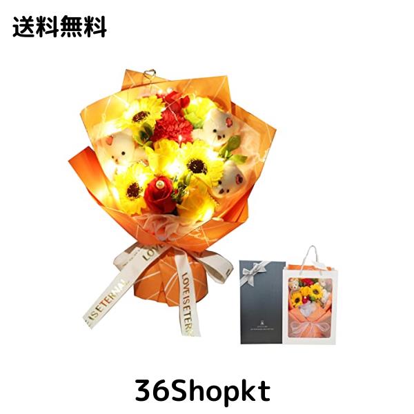 ?【くま LED付き 枯れない花 】ソープフラワー ひまわりとは、石けんで作られた花のことで、水やりの必要がなく、おしゃれなだけでなく、ほのかな香りがあり、長い間置いておいても枯れず。柔らかな香り、愛らしい形、鮮やかな色、スタイリッシュな外観など、本物の花のようにかわいらしく、その美しさと香りは人々を幸せな気分にさせてくれる。愛らしいクマと石けんのお花ソープフラワーを組み合わせたオリジナル花束、ライト付けで、サプライズの雰囲気を演出できます。
