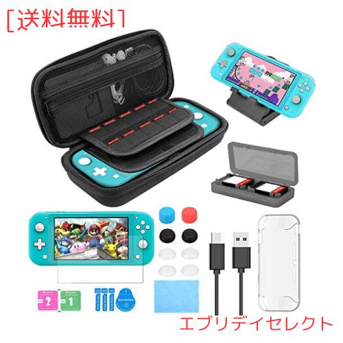 Nintendo Switch Lite キャリングケースセット 17 in 1 スイッチライト 収納ケース+ハードカバー+強化 ガラス フィルム+ゲームカードケー