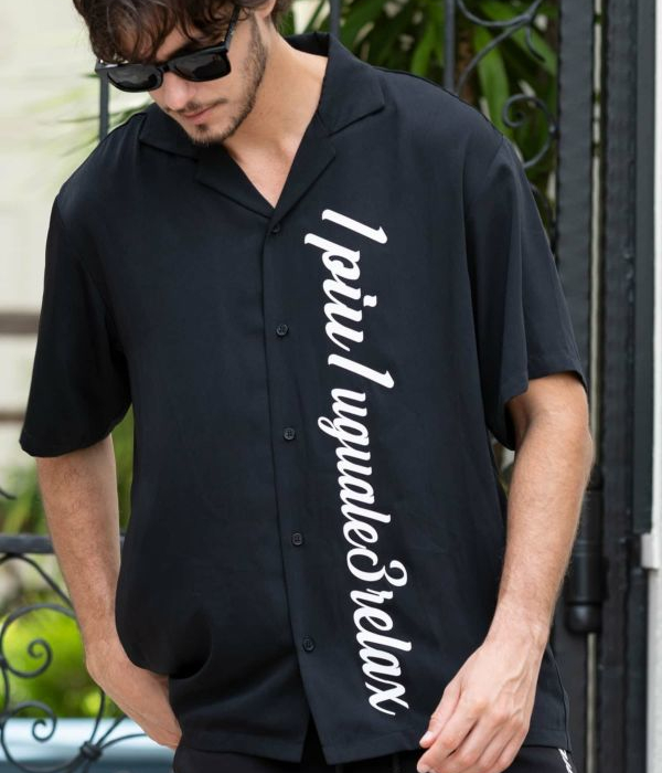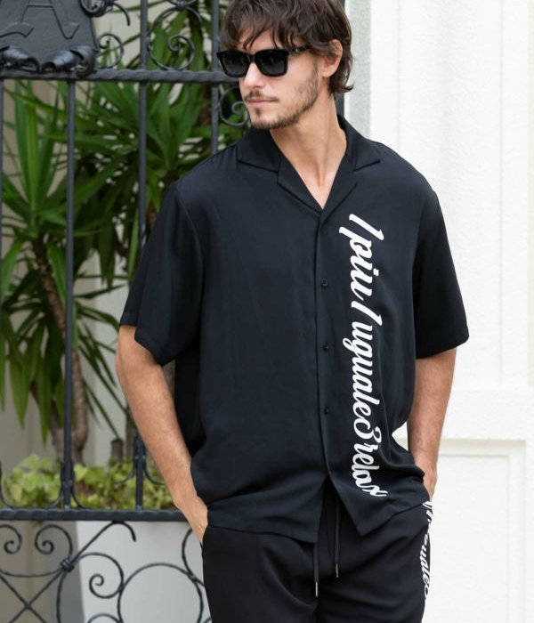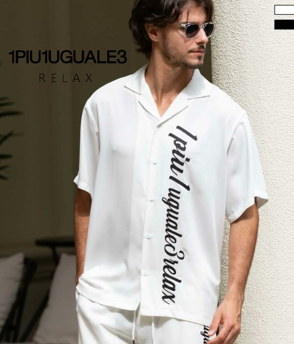 1PIU1UGUALE3 RELAX ウノピゥウノウグァーレトレ リラックス 縦ロゴアロハシャツ メンズ オープンカラー 半袖 カジュアル リゾート 夏