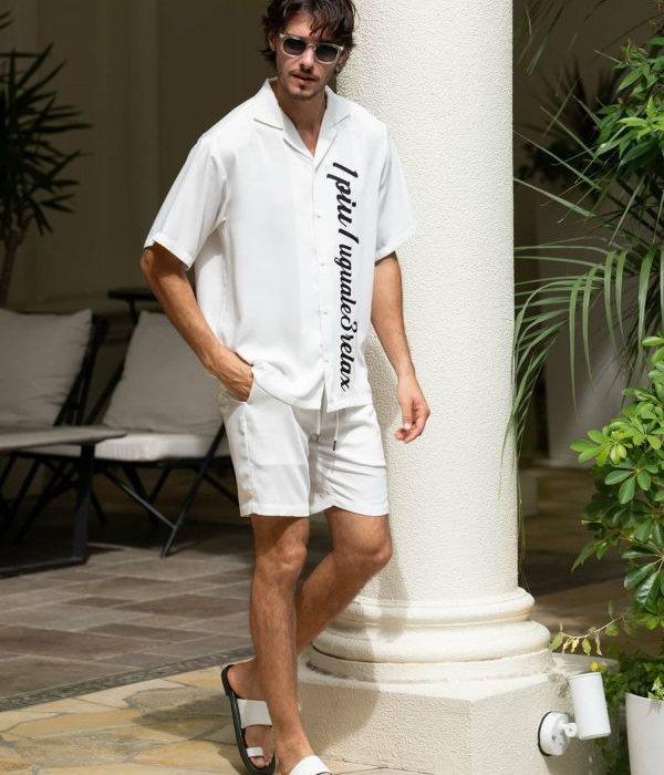 大人のサマースタイルに欠かせないオープンカラーシャツ。とろみのあるポリエステル生地により、ゆったりと優雅な落ち感を描きます。