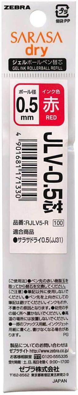 ゼブラ ゲルインクボールペン サラサドライ用替芯 JLV-0.5 【レッド】 RJLV5-R 【× 30 本 】