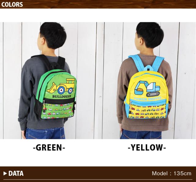 キッズ ショベルカー ブルドーザー リュック 働く車 リュックサック 子供用 ナイロン デイパック ピクニック 旅行 通園 遠足 幼稚園 保育園 習い事 プレゼント 308k