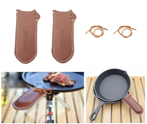 Tumecos Tumecos スキレット レザーハンドルカバー スキレットハンドルカバー ハンドルミット ハンドルホルダー 牛皮 ブラウン2