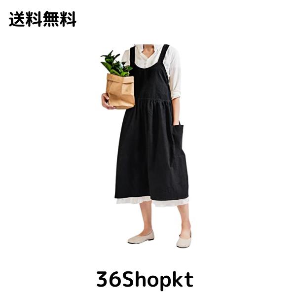 ◆商品名:[Euyqs] ハイウエスト 綿とリネン エプロンおしゃれ ナチュラル 脱着簡単 家庭用 ガーデン カフェ 作業着 (ブラック)
