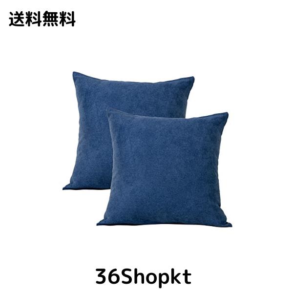 Topfinel クッションカバー リネンっぽい 45×45cm 北欧 おしゃれ 綿麻 無地 ソファ背当て 装飾枕カバー 座布団カバー ネイビー 2枚セッ