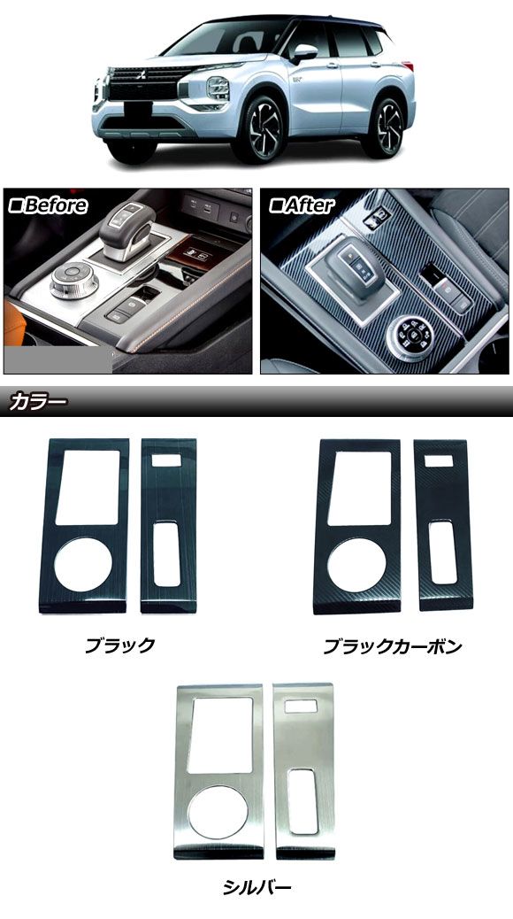センターコンソールギアパネル 三菱 アウトランダーPHEV GN0W 2021年12月〜 シルバー ステンレス製 ヘアライン仕上げ 入数:1セット(2個) AP-IT3605-SI