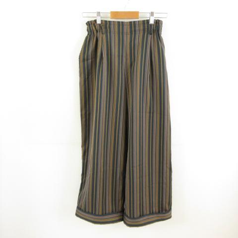 【中古】ミスティウーマン mysty woman ワイドパンツ ロング ストライプ 緑 茶 M *T324 レディース