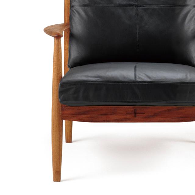 天然木のフレームと、牛本革を組み合わせた贅沢な1人掛けソファです。使い続けるなかで艶やかな美しい木肌に、革は柔らかくしっとりとした味わいに変化していきます。永く使うほどに味わいを増していくため、経年変化を楽しむことができます。