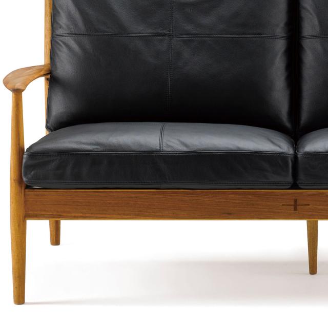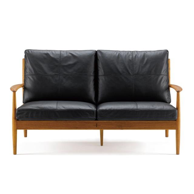 天然木のフレームと、牛本革を組み合わせた贅沢な2人掛けソファです。使い続けるなかで艶やかな美しい木肌に、革は柔らかくしっとりとした味わいに変化していきます。永く使うほどに味わいを増していくため、経年変化を楽しむことができます。