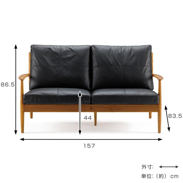 ソファ 2人掛け 幅157cm 本牛革ブラック EDDA ( 開梱設置 エッダ 革 本革 レザー 天然木 アカシア 無垢材 北欧 リビング ブラック 黒 肘付き 肘掛 モダン シンプル 木製フレーム 完成品 )