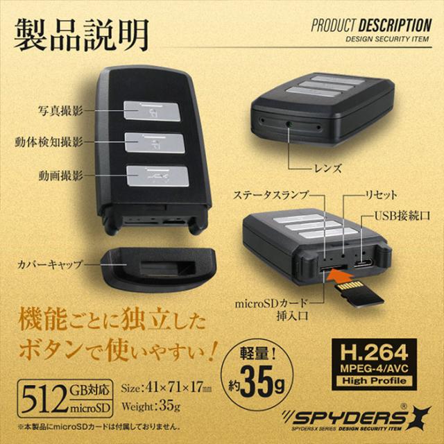 A-210 フルHD キーレス型カメラ 小型カメラ スパイカメラ スパイカメラ オンスクエア スパイダーズX