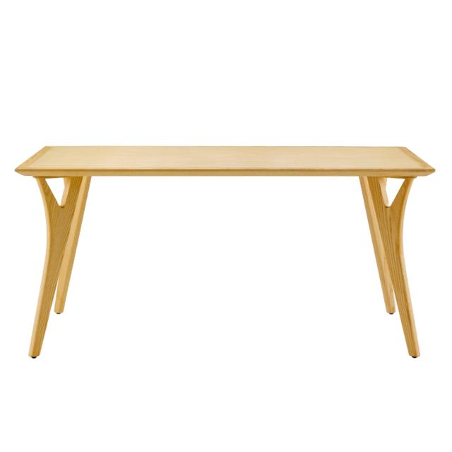 脚のデザインが特徴的なダイニングテーブルで、天然木の優しい肌触りと美しさを大切にした丁寧なつくりです。また、ホワイトアッシュ無垢材を使用し、木の色味を活かしたカラーリングで、素材である木を木として生かし続けるために、表面に硬質塗膜を形成しない自然系オイルで塗装しています。