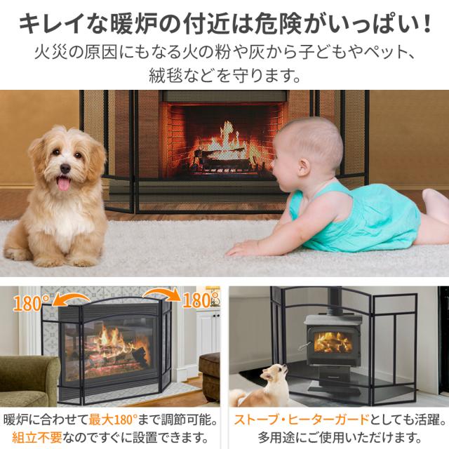 ファイヤーガード 暖炉ガード ストーブフェンス ストーブ 暖炉 保護 ファイヤースクリーン 薪 薪ストーブ ストーブガード 火の粉 灰 安心 折りたたみ アクセサリー 安全 セーフティガード 自立 安全ガード自立式 ゲート ブラック フェンス 置くだけ 送料無料