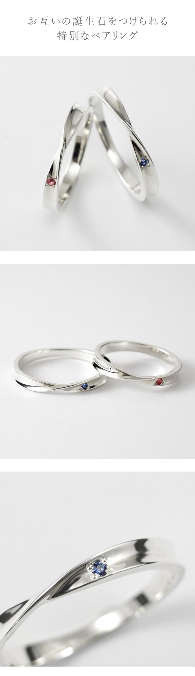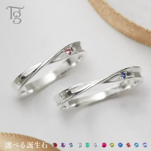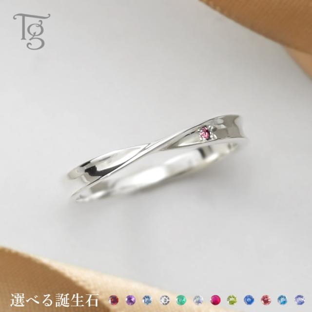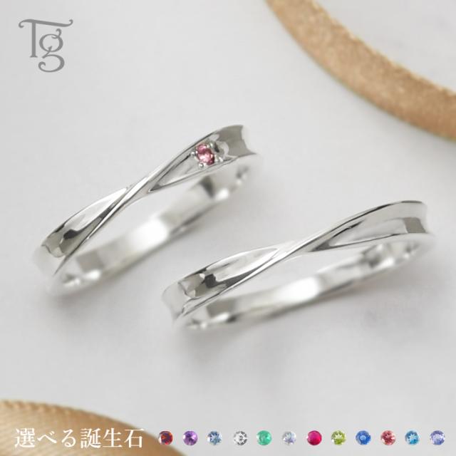 ペアリング 2本セット シルバー925 誕生石 結婚指輪 細い 刻印 大人 シンプル ひねり メビウス 上品 指輪 マリッジリング クリスマスプレゼント Terra-gratia テラグラティア jlr044bs_pair