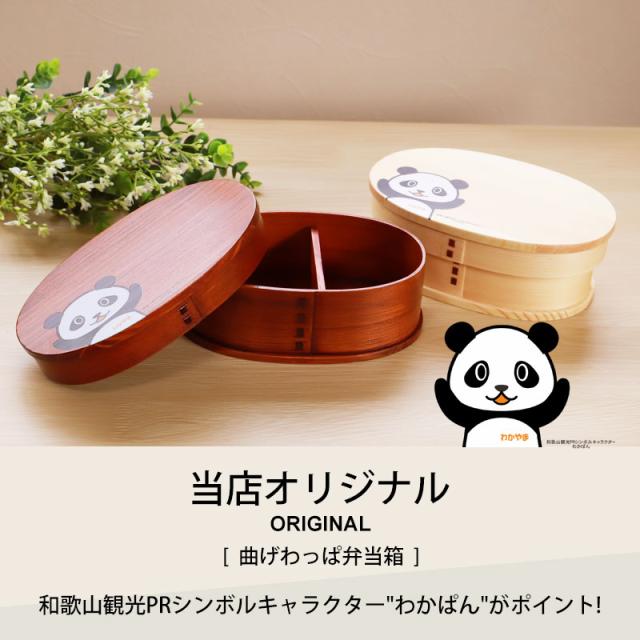 自社で一つ一つ丁寧に塗りあげた和歌山観光PRシンボルキャラクター""わかぱん""がポイントの曲げわっぱ弁当箱。