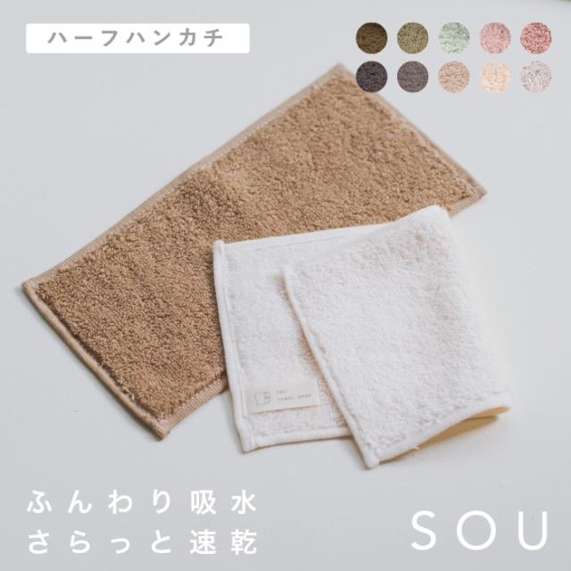 【3枚セット 】 ハーフハンカチ ふんわりタオル ハンカチ タオル シンプル 無地 持ち運び コンパクト ハーフ 二つ折り カラフル 厚手 くすみカラー ニュアンスカラー アースカラー 本多タオル