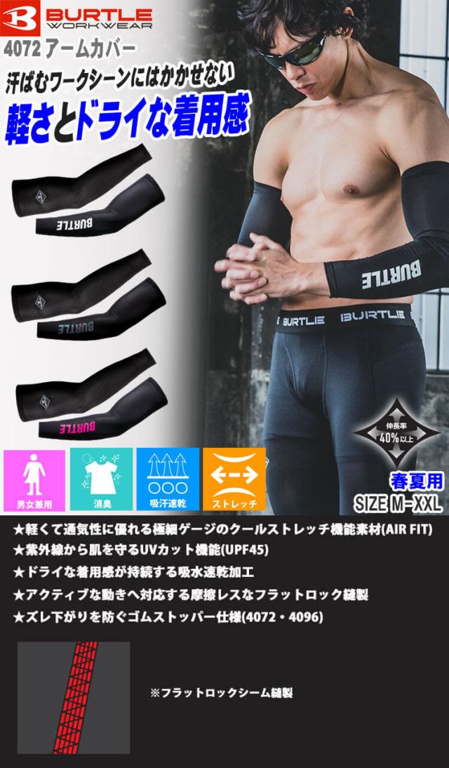 [即納]BURTLE バートル 春夏インナー アームカバー 4072 コンプレッションインナー