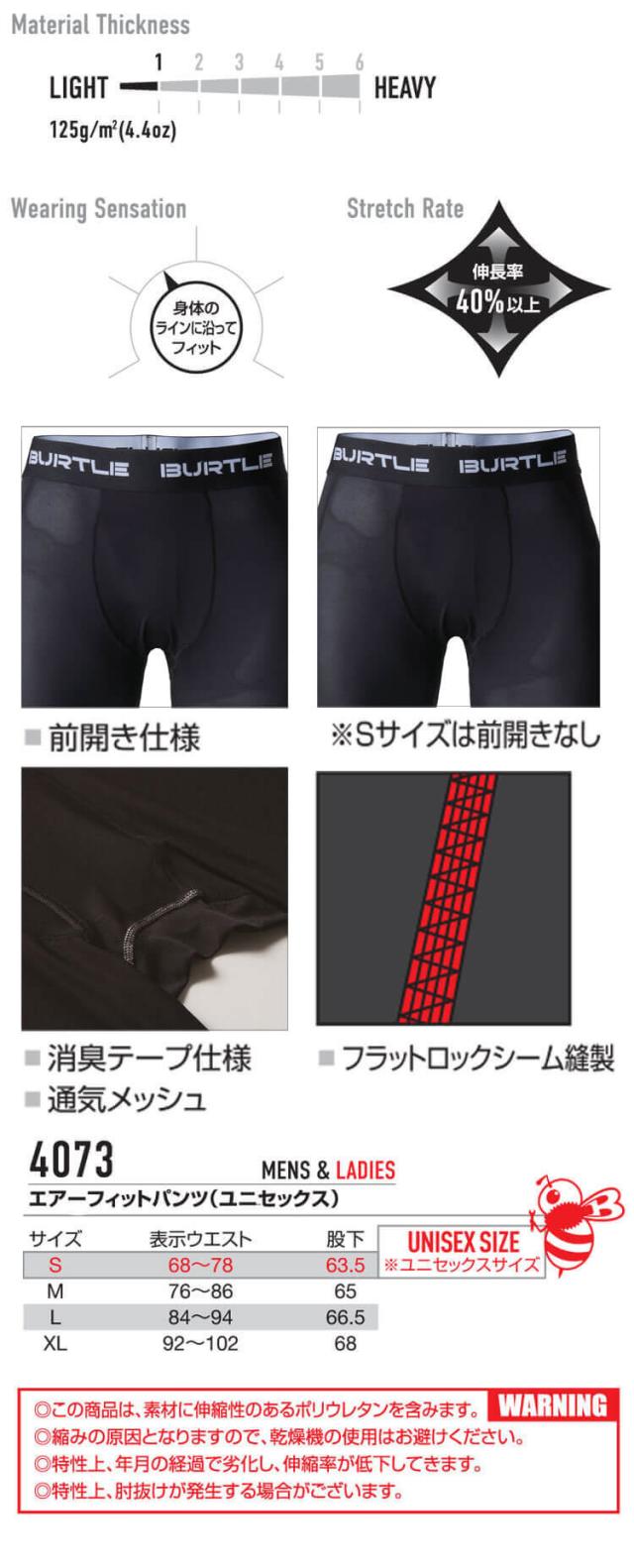 [即納]BURTLE バートル 春夏インナー エアーフィットパンツ 4073 コンプレッションインナー